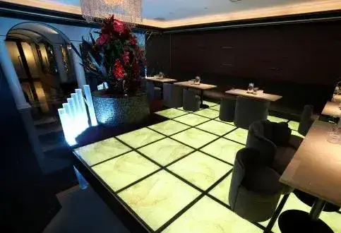 落ち着いた照明とラグジュアリーなインテリアが広がる店内は、